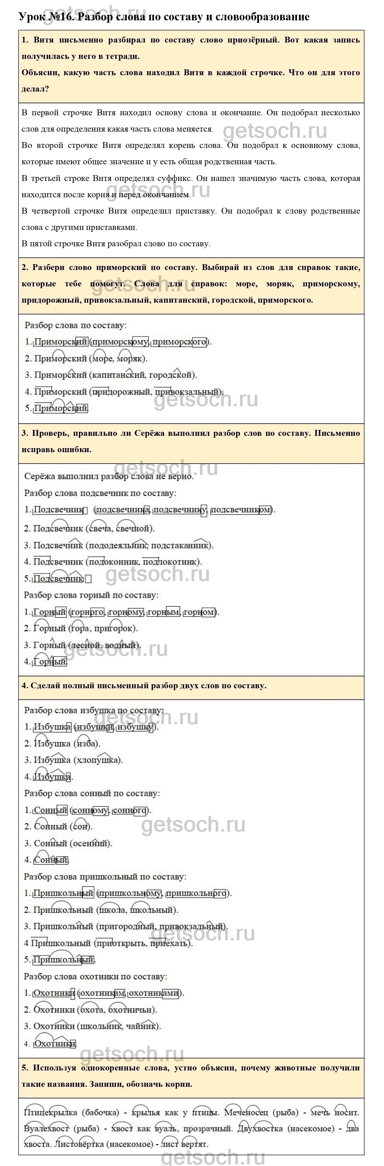 Рассмотрим ответы на Урок №16 из учебника по русскому языку для 3 класса Иванова