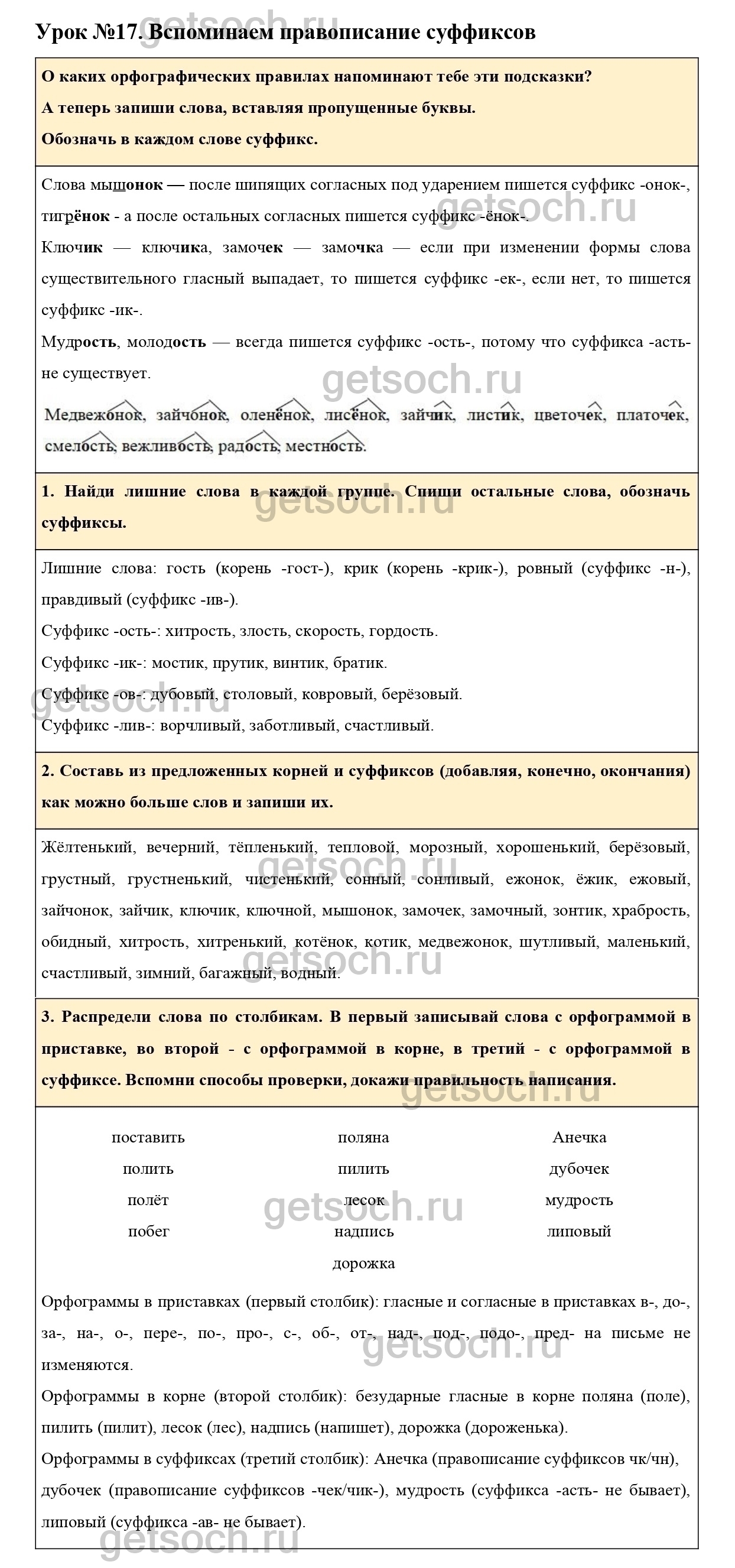 Рассмотрим ответы на Урок №17 из учебника по русскому языку для 3 класса Иванова