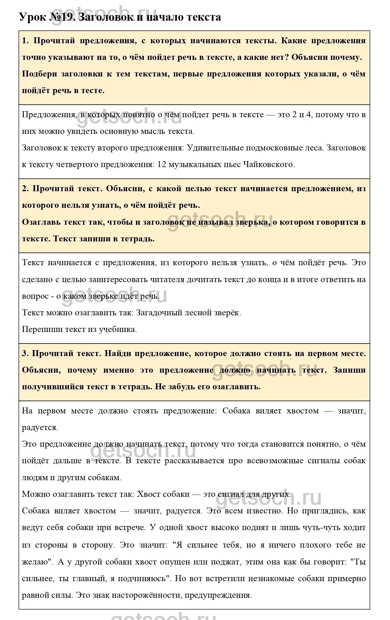 Рассмотрим ответы на Урок №19 из учебника по русскому языку для 3 класса Иванова