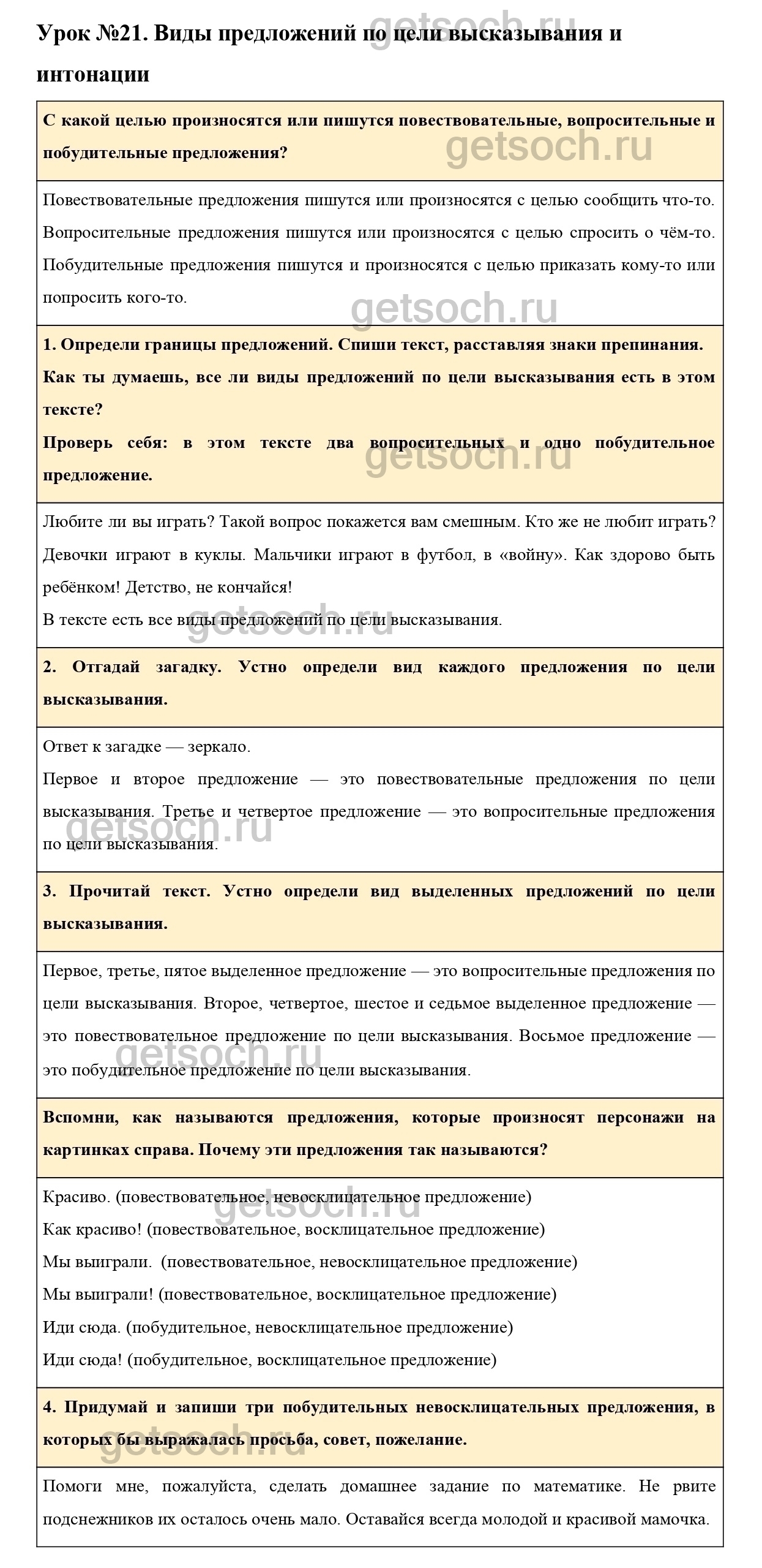 Рассмотрим ответы на Урок №21 из учебника по русскому языку для 3 класса Иванова
