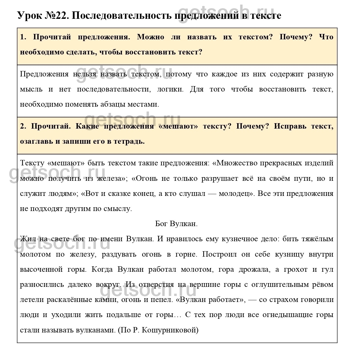 Рассмотрим ответы на Урок №22 из учебника по русскому языку для 3 класса Иванова