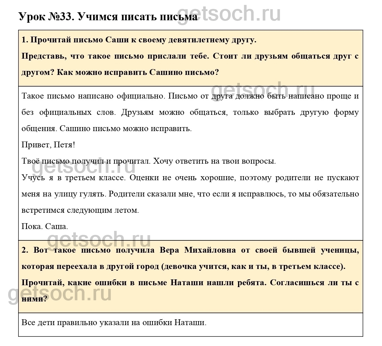 Рассмотрим ответы на Урок №33 из учебника по русскому языку для 3 класса Иванова