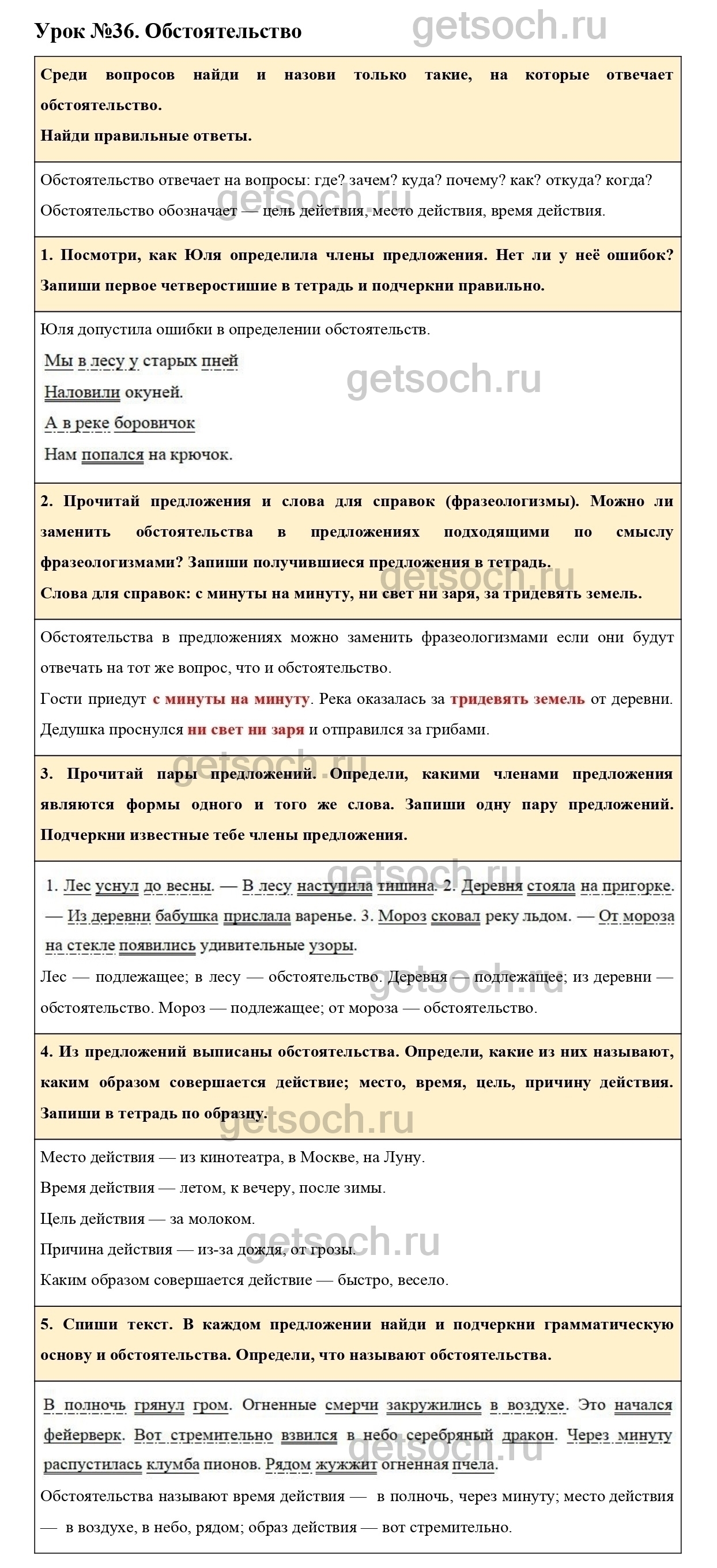 Рассмотрим ответы на Урок №36 из учебника по русскому языку для 3 класса Иванова