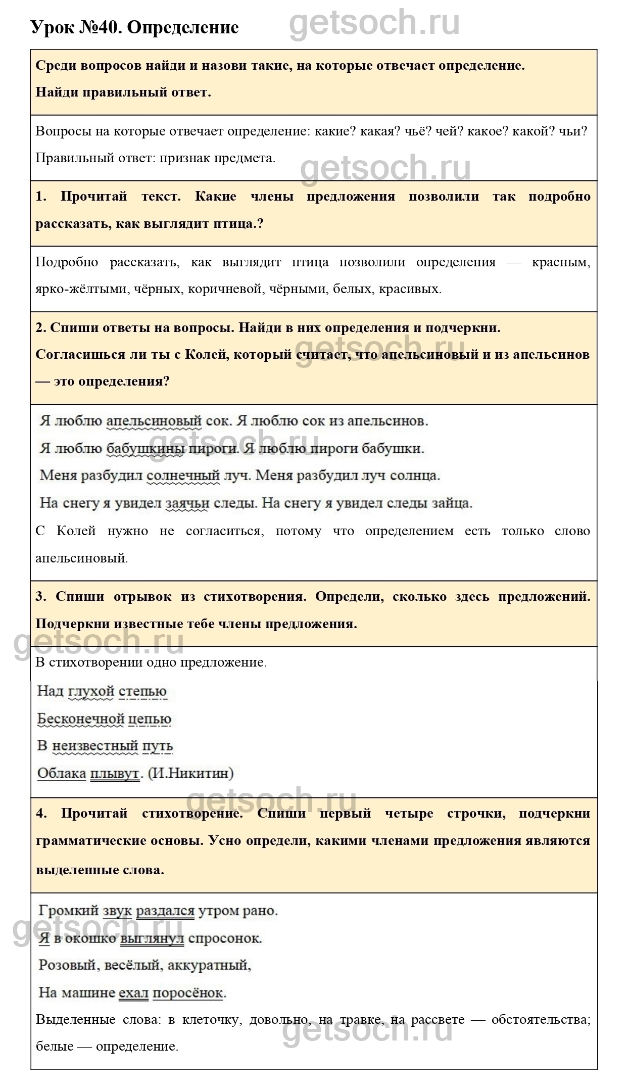 Рассмотрим ответы на Урок №40 из учебника по русскому языку для 3 класса Иванова