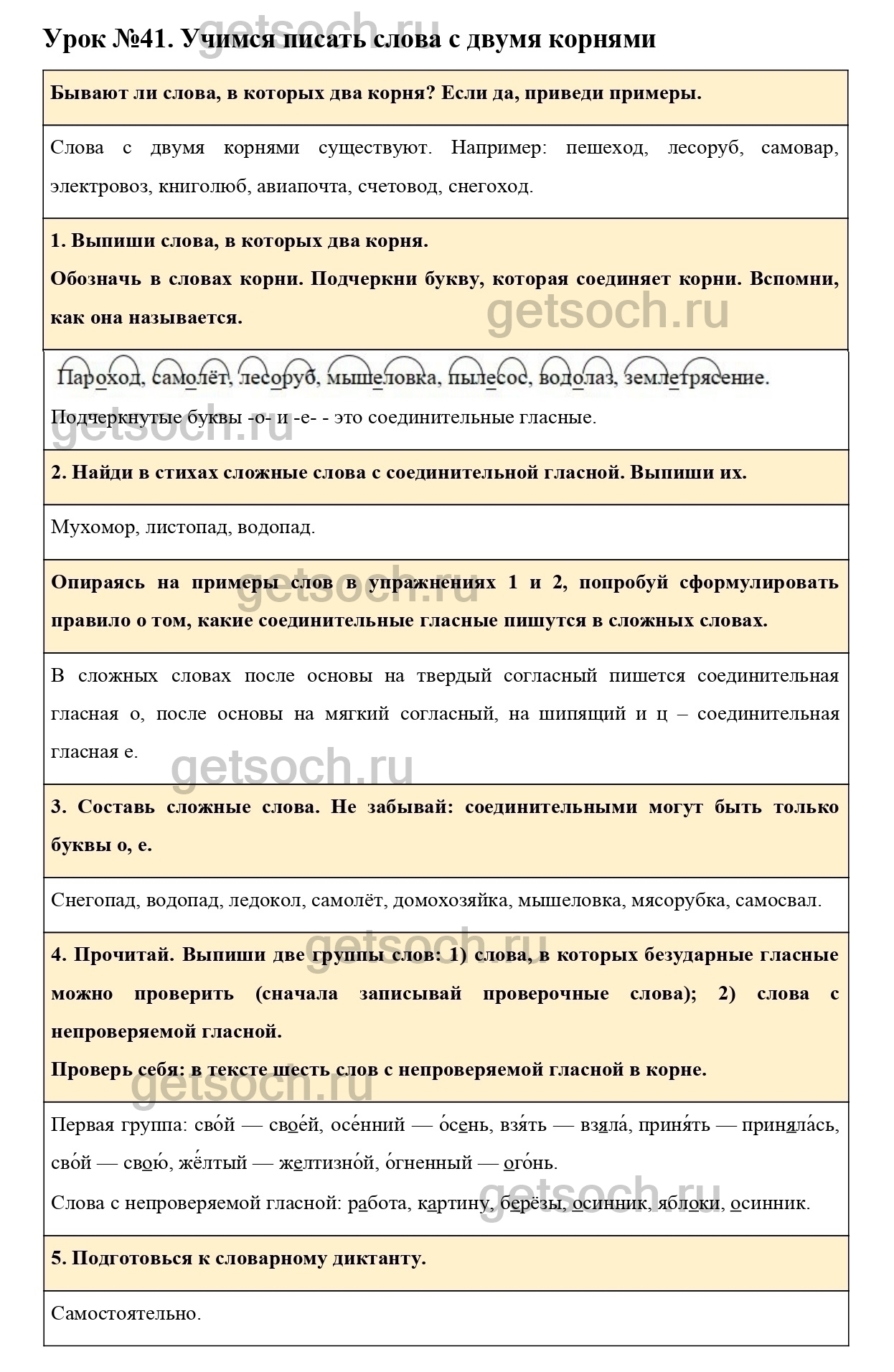 Рассмотрим ответы на Урок №41 из учебника по русскому языку для 3 класса Иванова