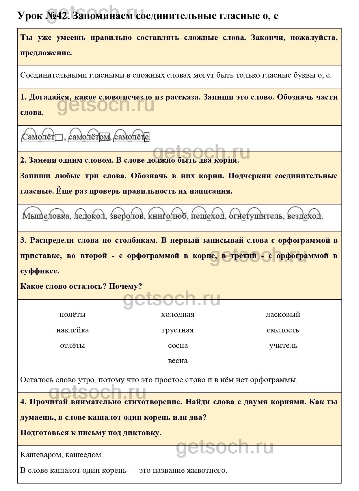 Рассмотрим ответы на Урок №42 из учебника по русскому языку для 3 класса Иванова
