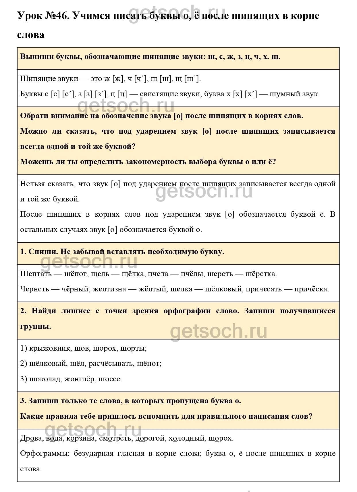 Рассмотрим ответы на Урок №46 из учебника по русскому языку для 3 класса Иванова