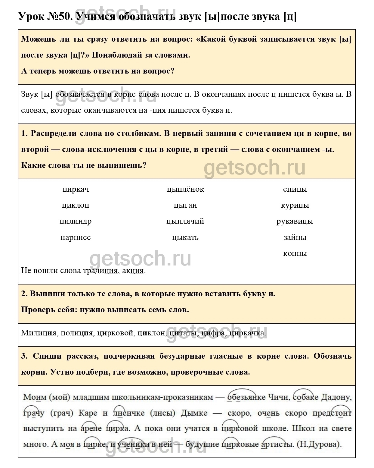 Рассмотрим ответы на Урок №50 из учебника по русскому языку для 3 класса Иванова