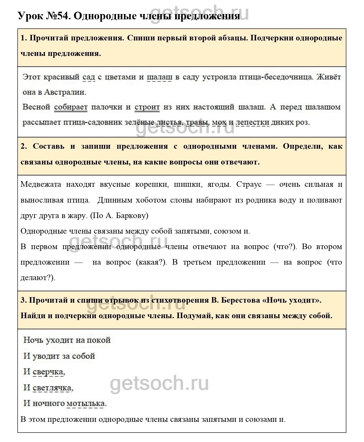 Рассмотрим ответы на Урок №54 из учебника по русскому языку для 3 класса Иванова