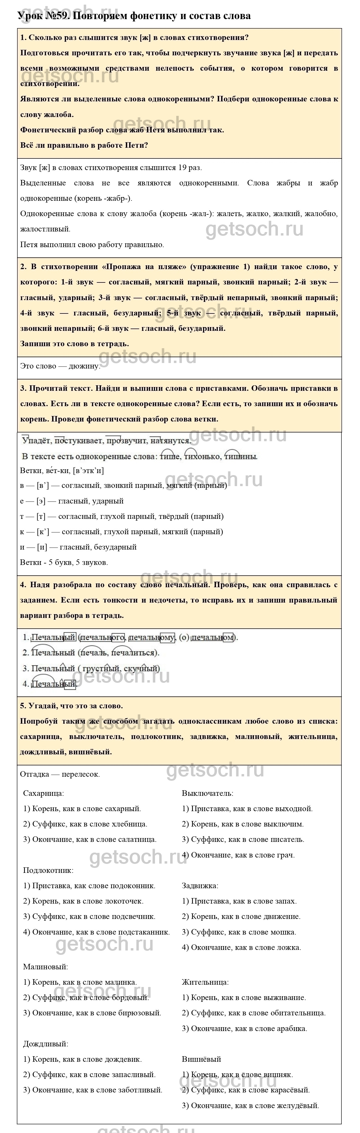 Рассмотрим ответы на Урок №59 из учебника по русскому языку для 3 класса Иванова