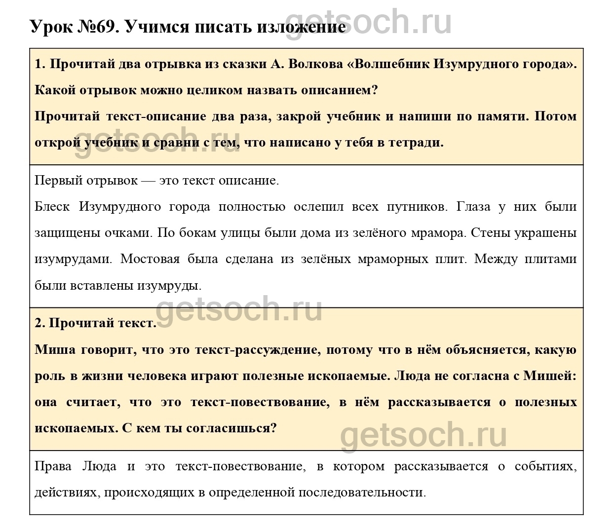 Рассмотрим ответы на Урок №69 из учебника по русскому языку для 3 класса Иванова