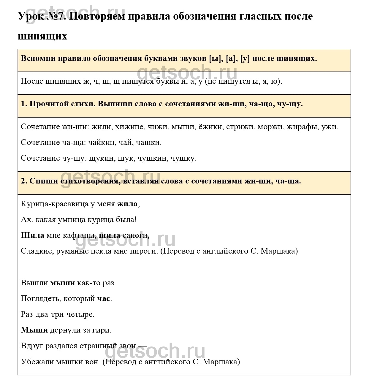 1. Прочитай стихи. Выпиши слова с сочетаниями жи-ши, ча-ща, чу-щу.
