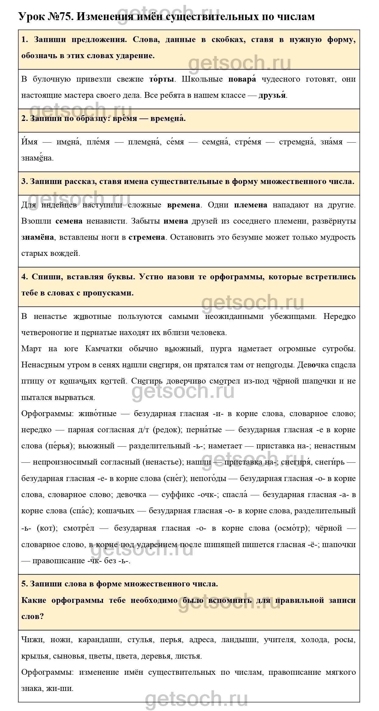 Рассмотрим ответы на Урок №75 из учебника по русскому языку для 3 класса Иванова