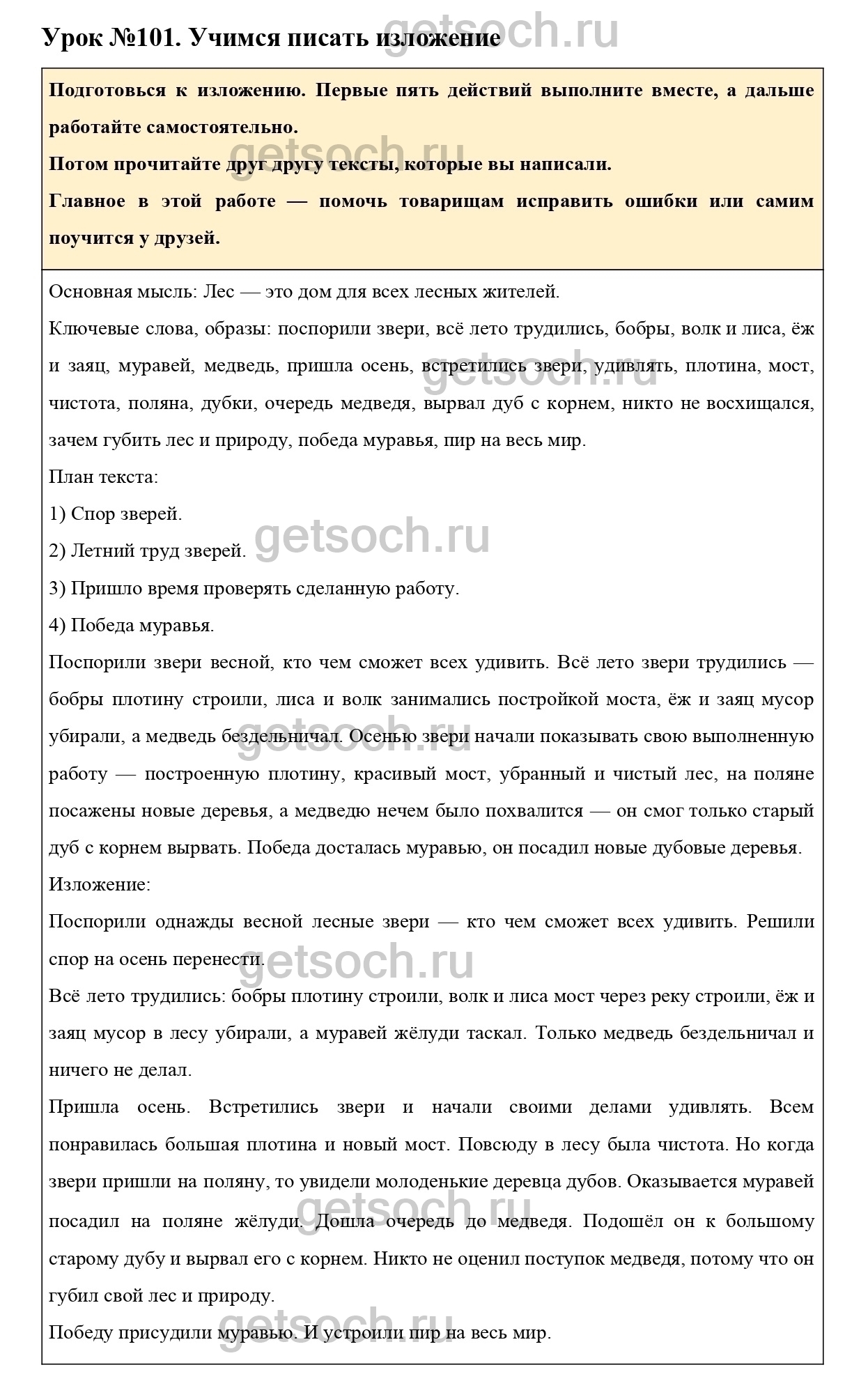 Рассмотрим ответы на Урок №101 из учебника по русскому языку для 3 класса Иванова