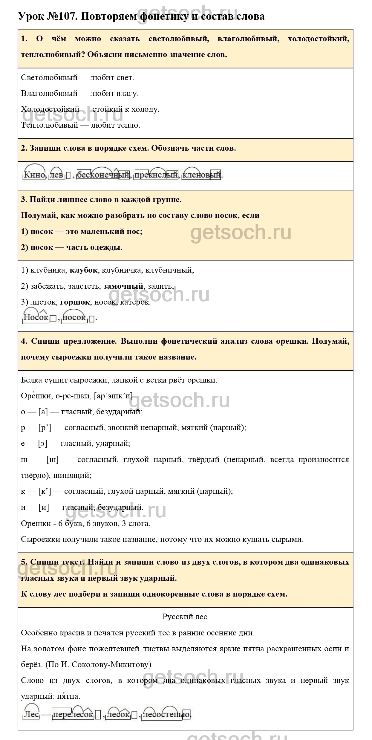 Рассмотрим ответы на Урок №107 из учебника по русскому языку для 3 класса Иванова