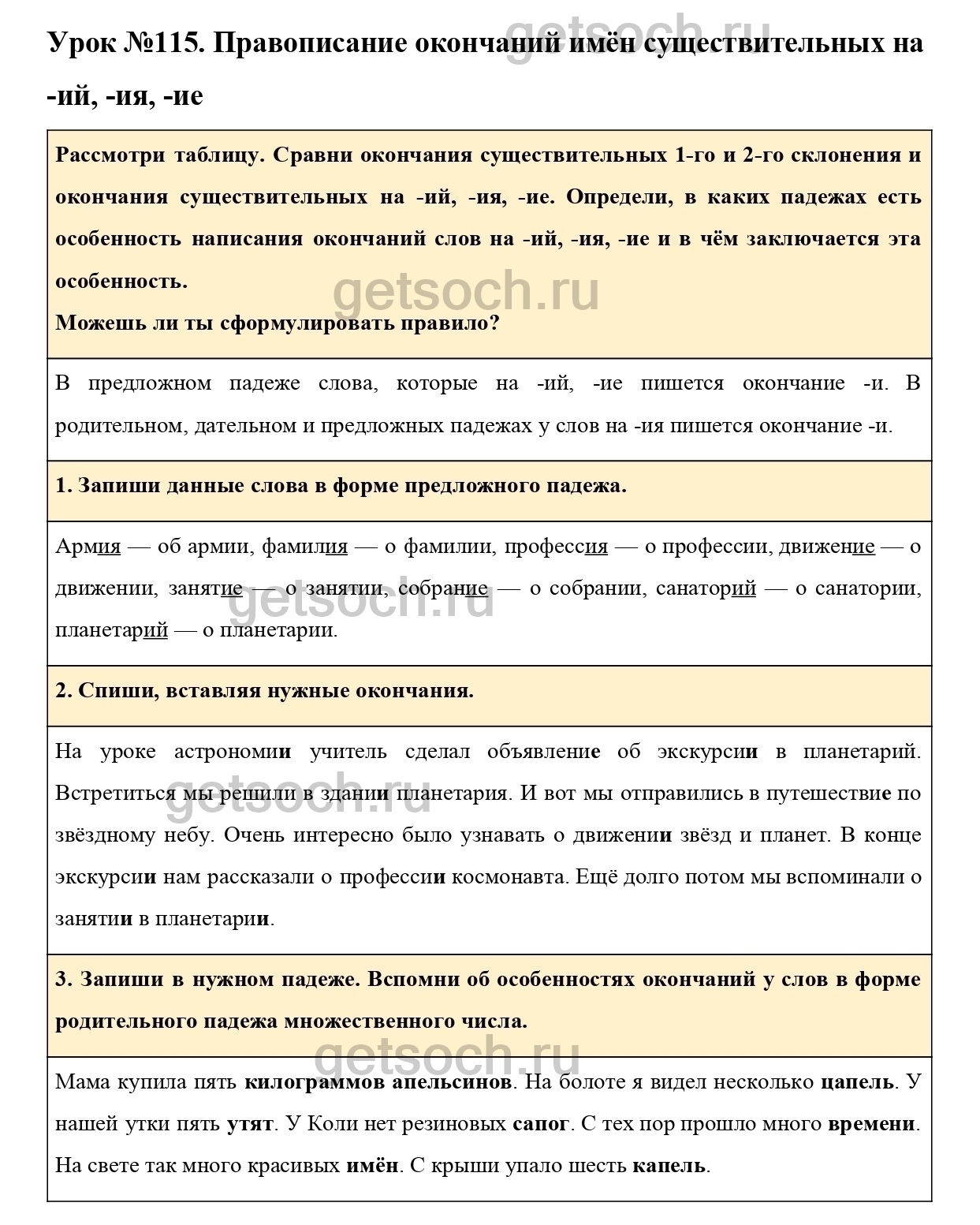 Рассмотрим ответы на Урок №115 из учебника по русскому языку для 3 класса Иванова