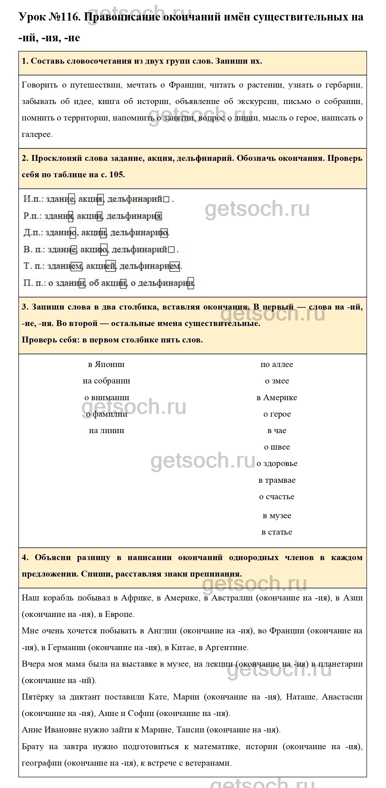 Рассмотрим ответы на Урок №116 из учебника по русскому языку для 3 класса Иванова