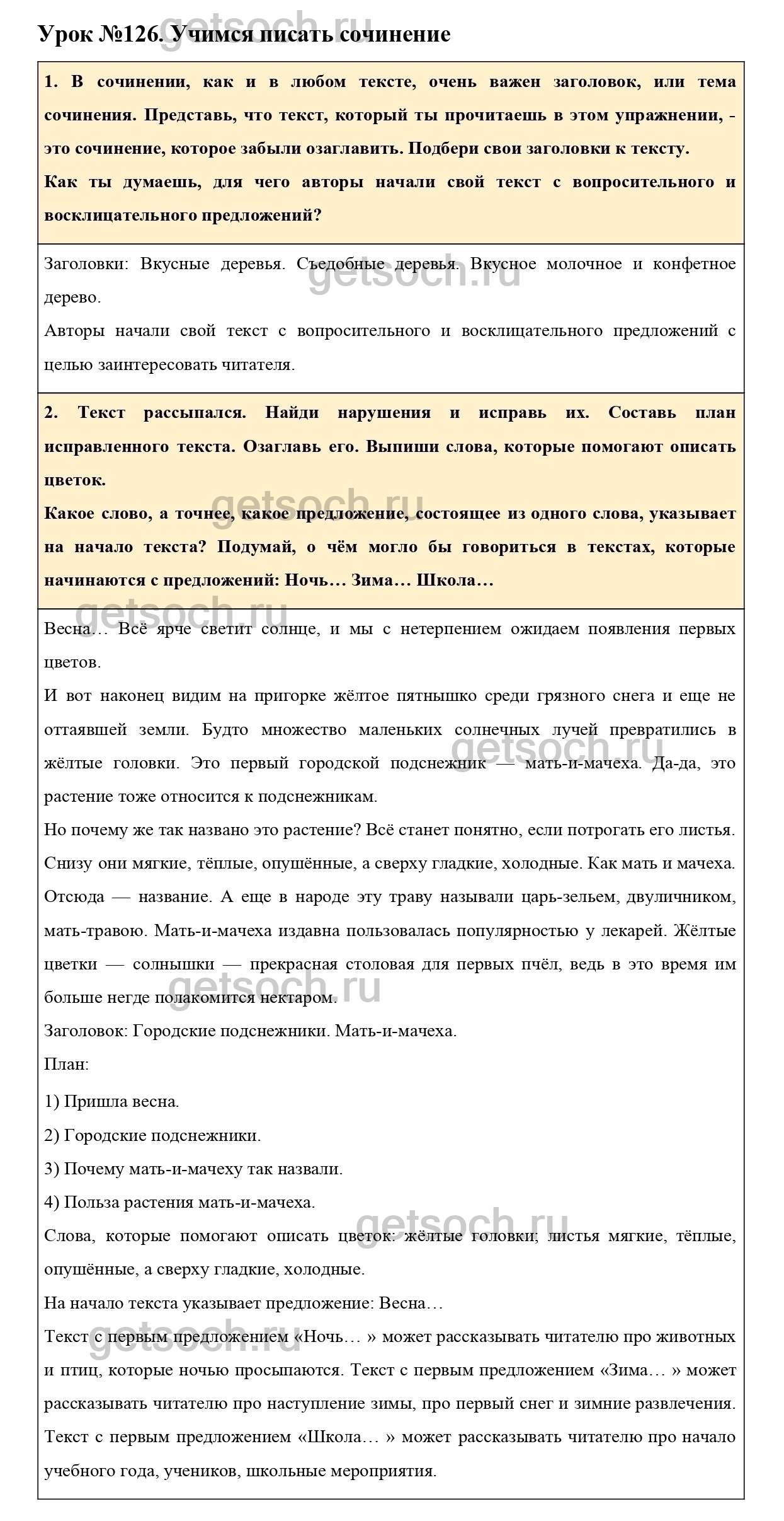 Рассмотрим ответы на Урок №126 из учебника по русскому языку для 3 класса Иванова