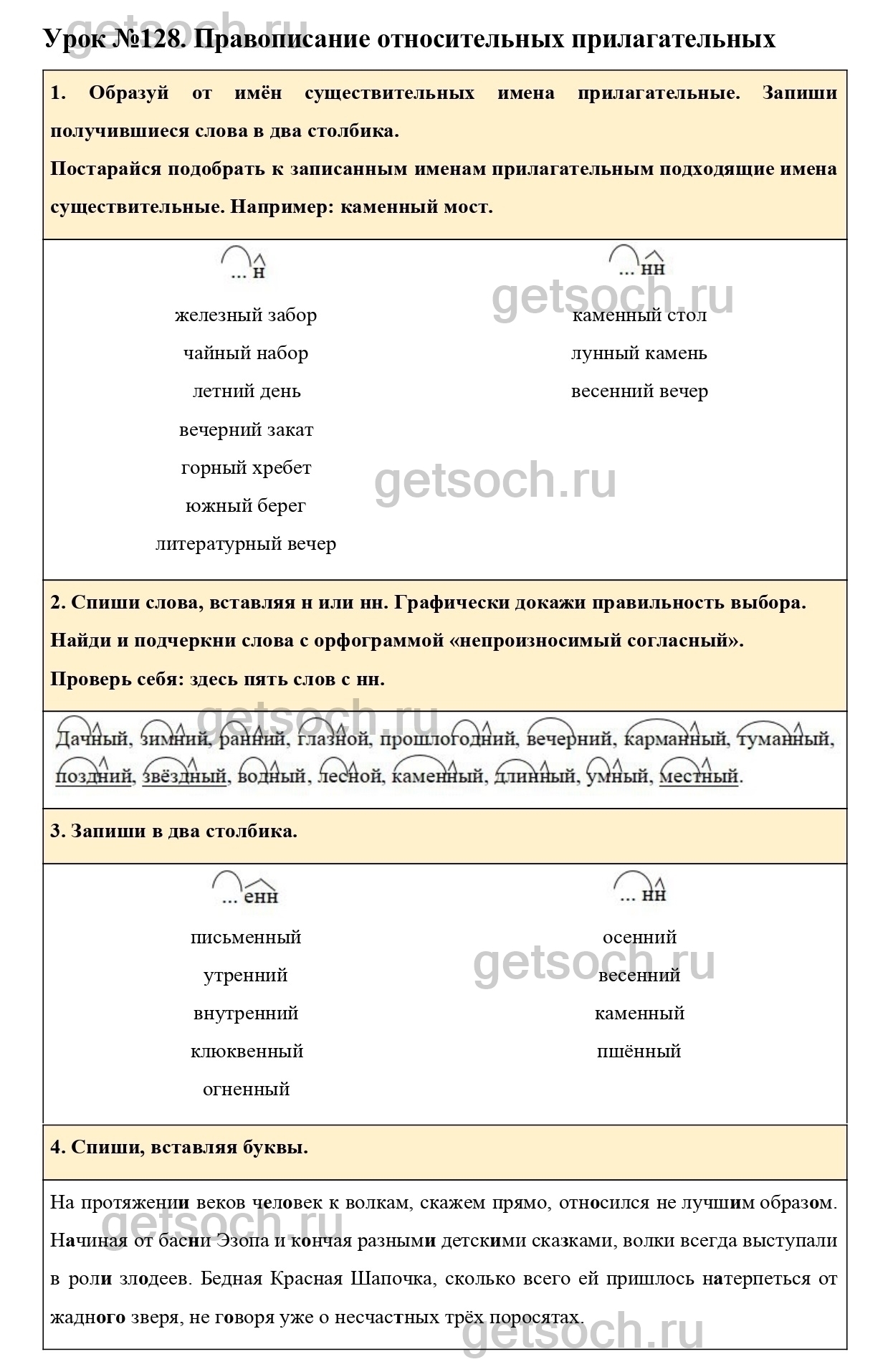 Рассмотрим ответы на Урок №128 из учебника по русскому языку для 3 класса Иванова