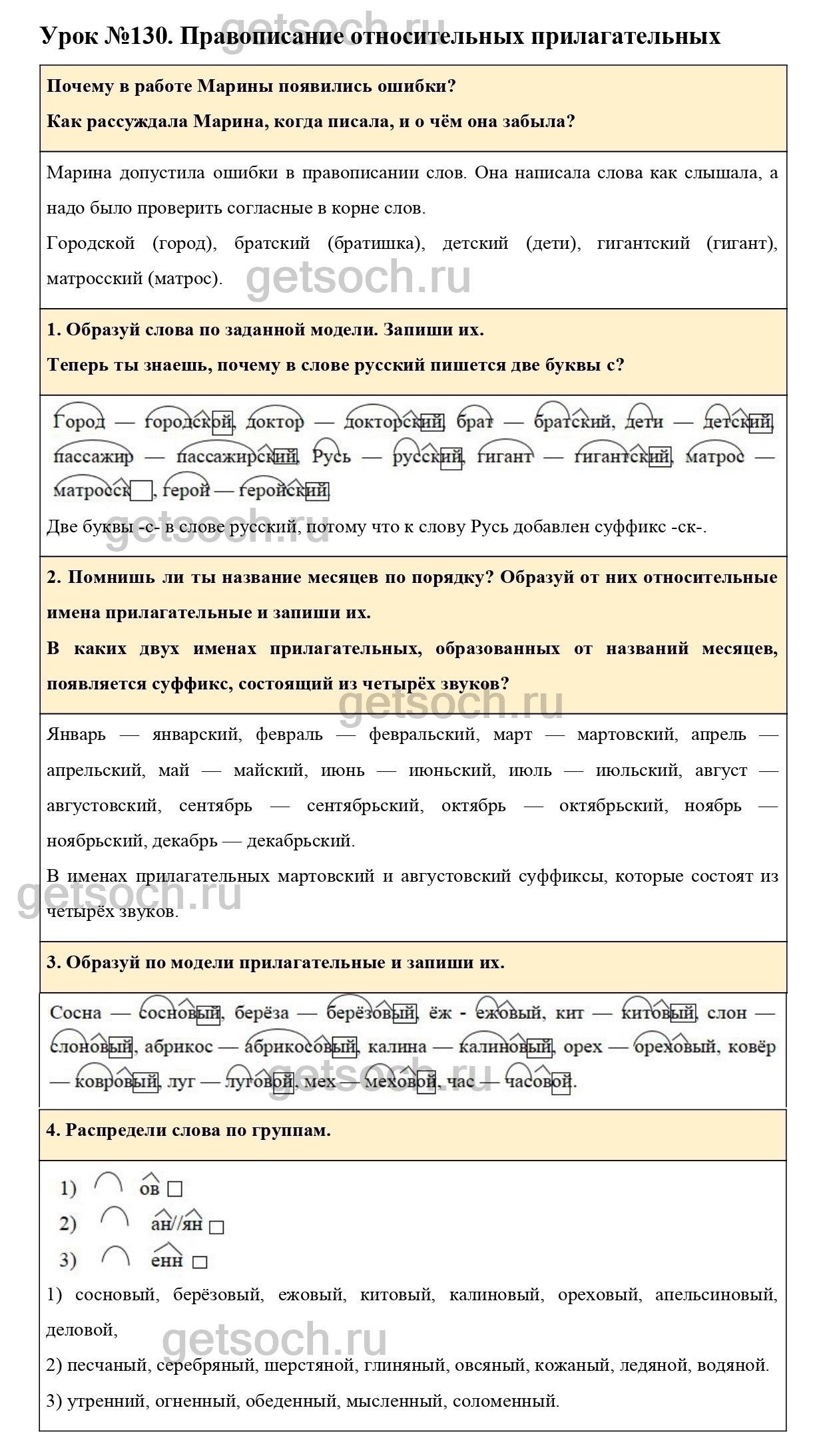 Рассмотрим ответы на Урок №130 из учебника по русскому языку для 3 класса Иванова