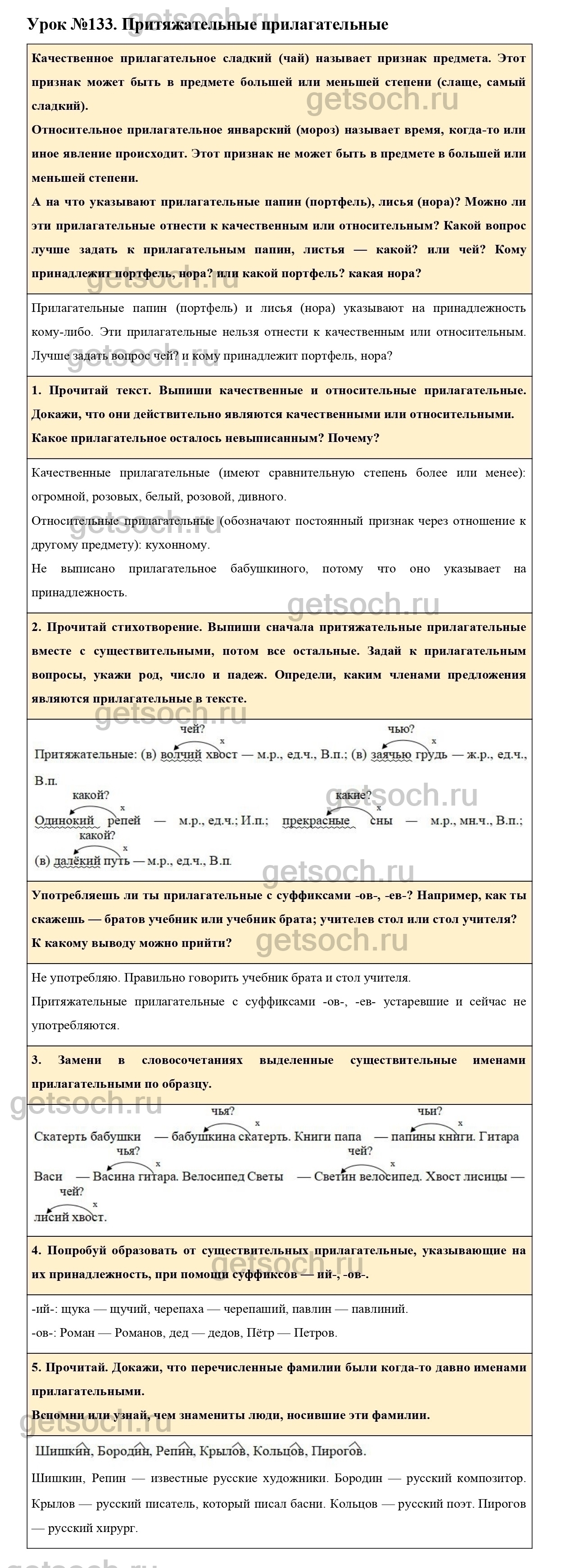 Рассмотрим ответы на Урок №133 из учебника по русскому языку для 3 класса Иванова