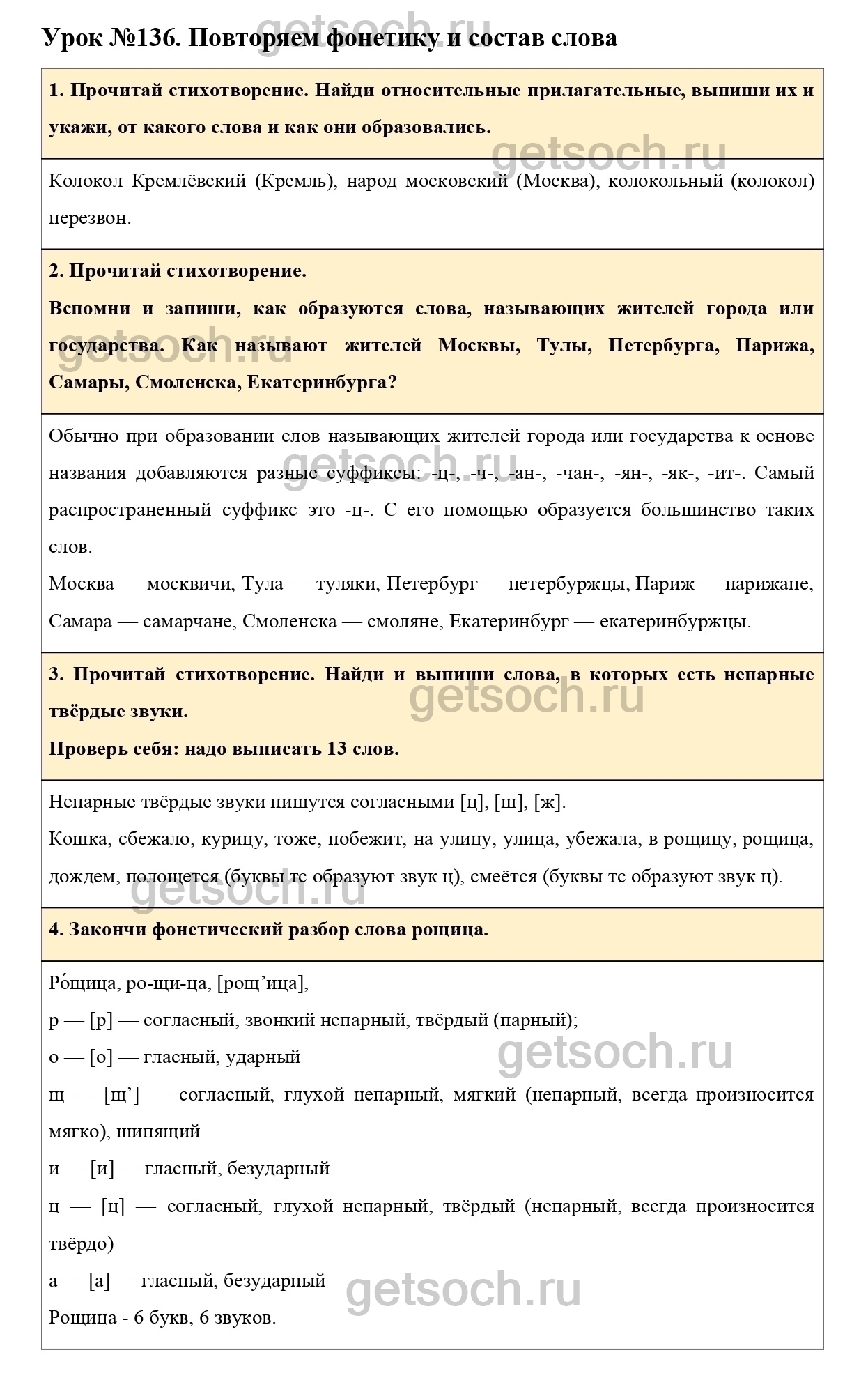 Рассмотрим ответы на Урок №136 из учебника по русскому языку для 3 класса Иванова