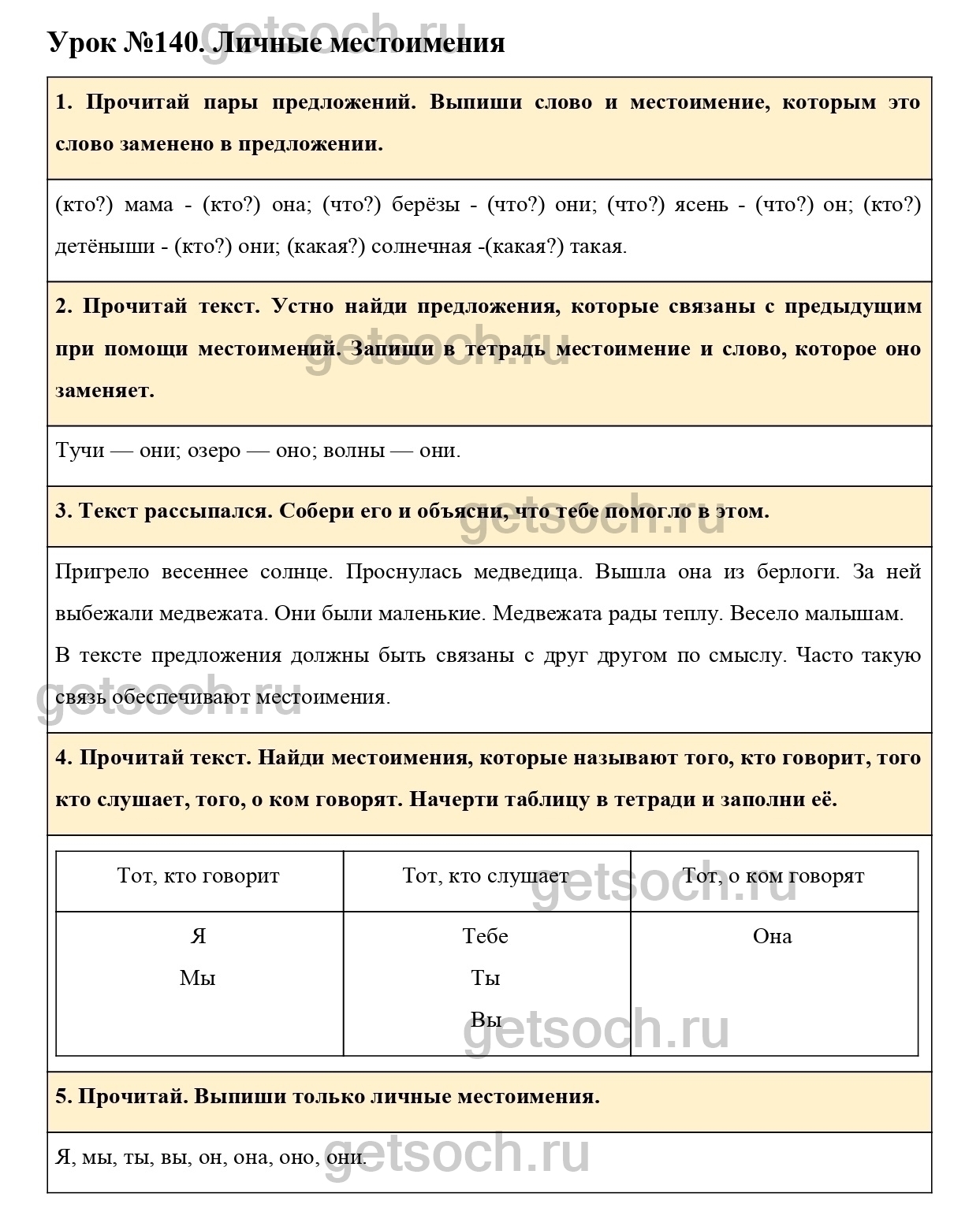 Рассмотрим ответы на Урок №140 из учебника по русскому языку для 3 класса Иванова