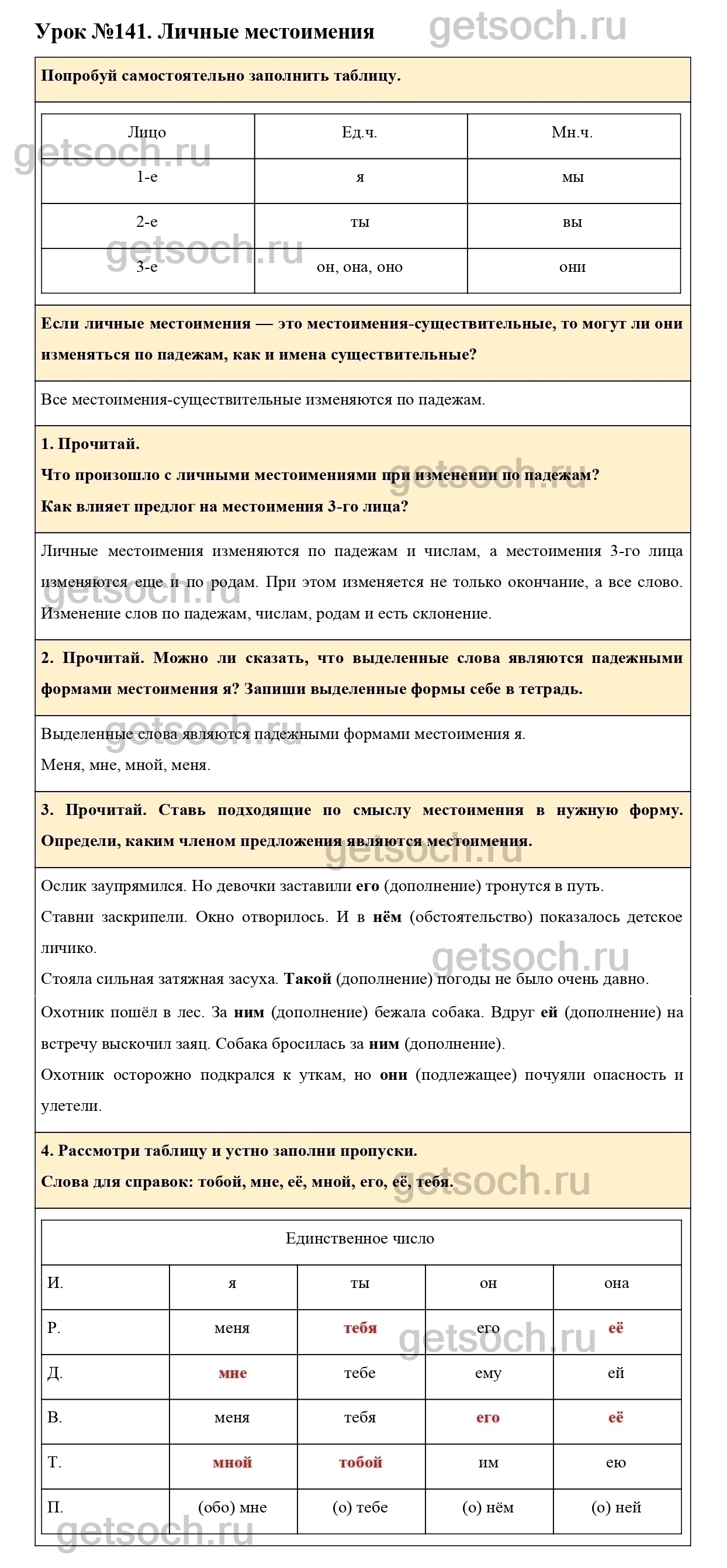 Слова для справок: тобой, мне, её, мной, его, её, тебя.”