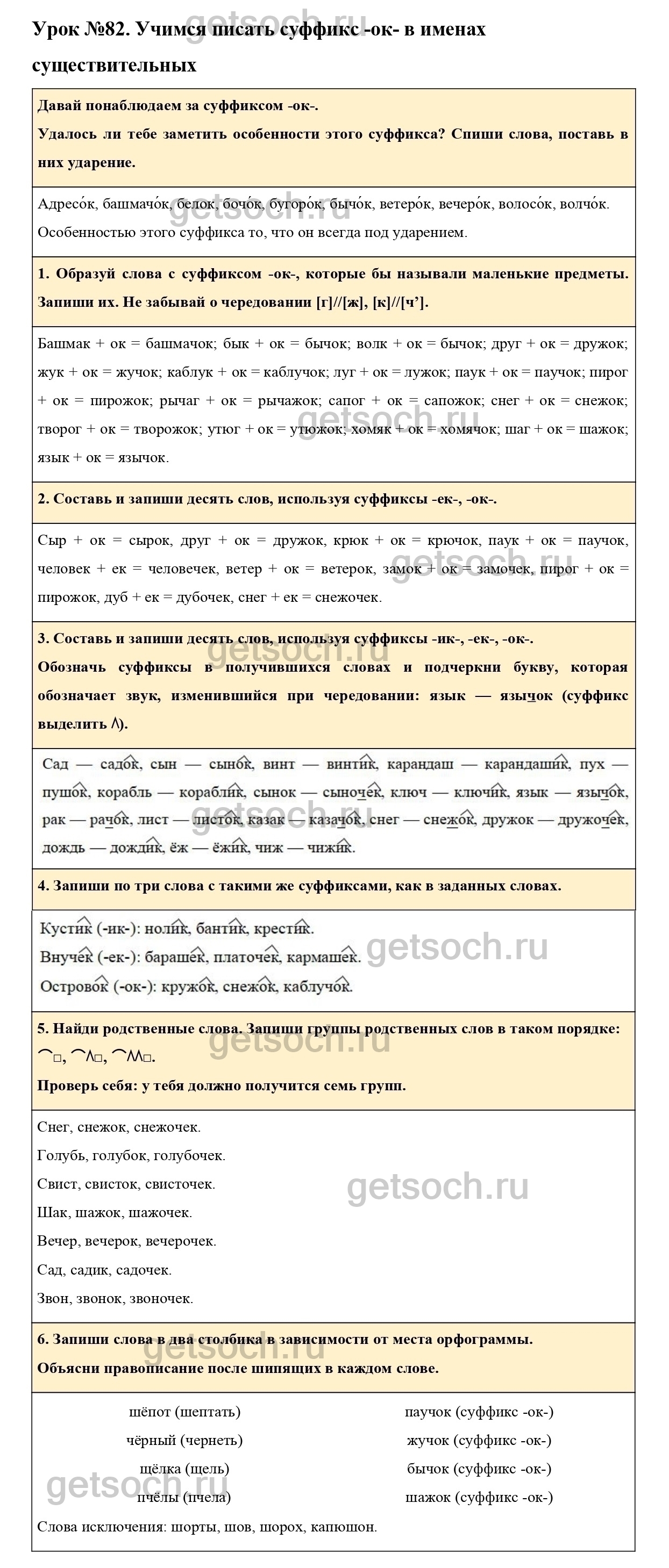 Рассмотрим ответы на Урок №82 из учебника по русскому языку для 3 класса Иванова