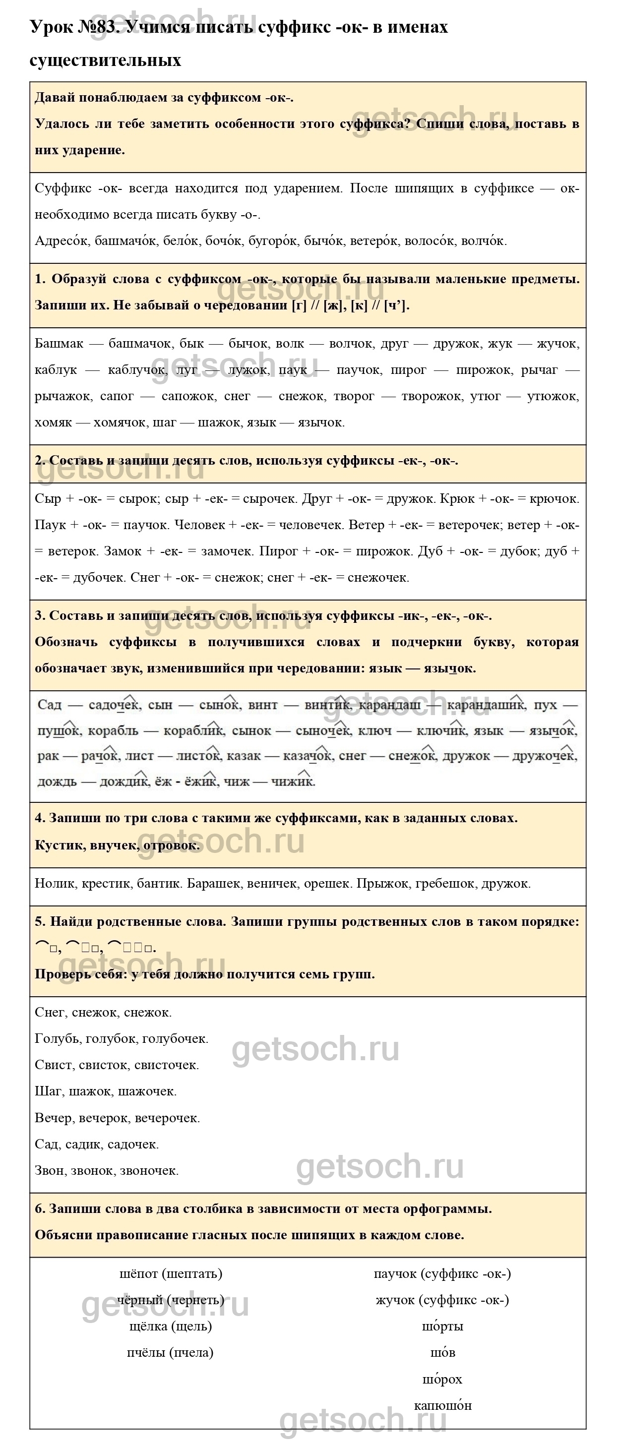 Рассмотрим ответы на Урок №83 из учебника по русскому языку для 3 класса Иванова