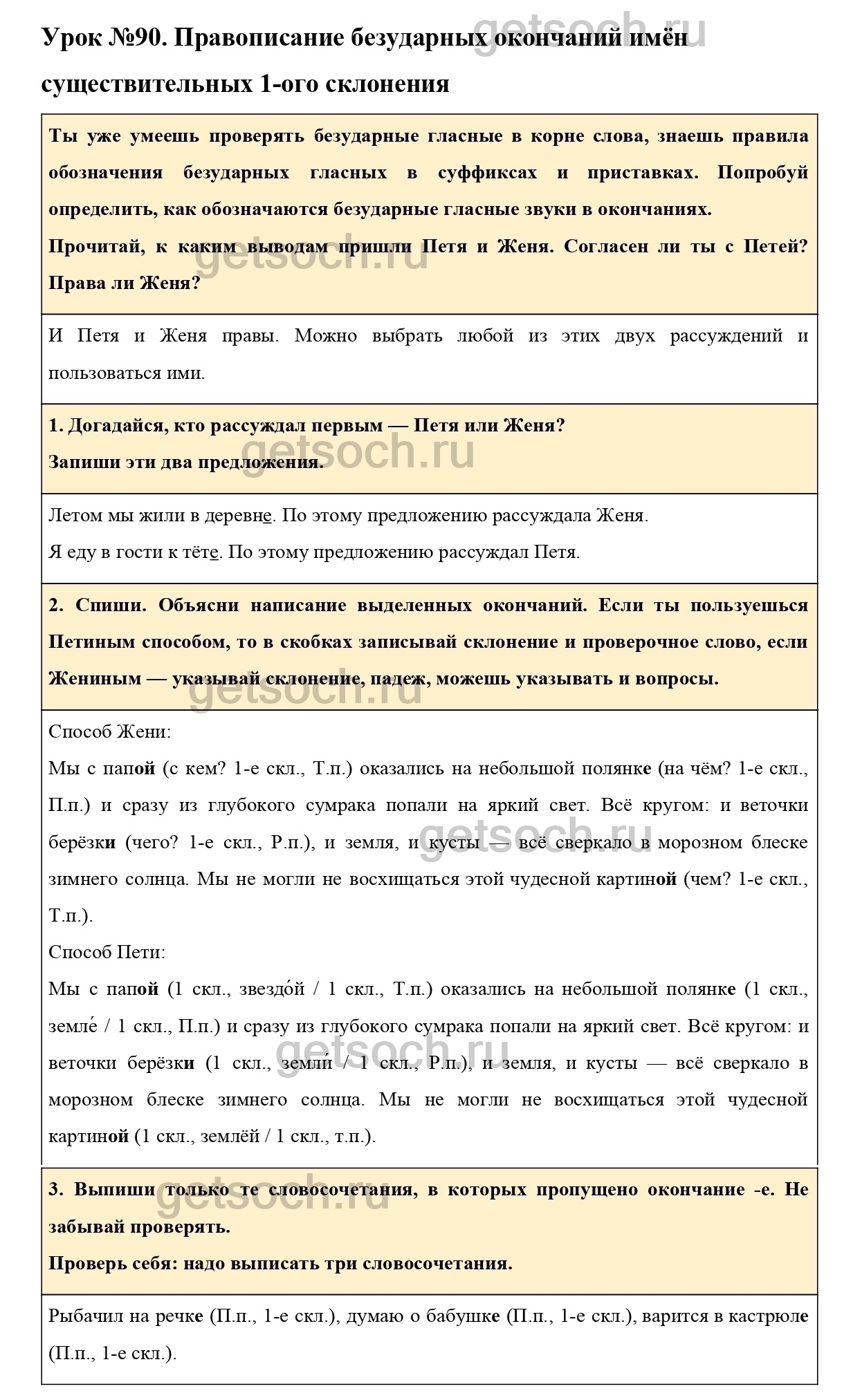 Рассмотрим ответы на Урок №90 из учебника по русскому языку для 3 класса Иванова
