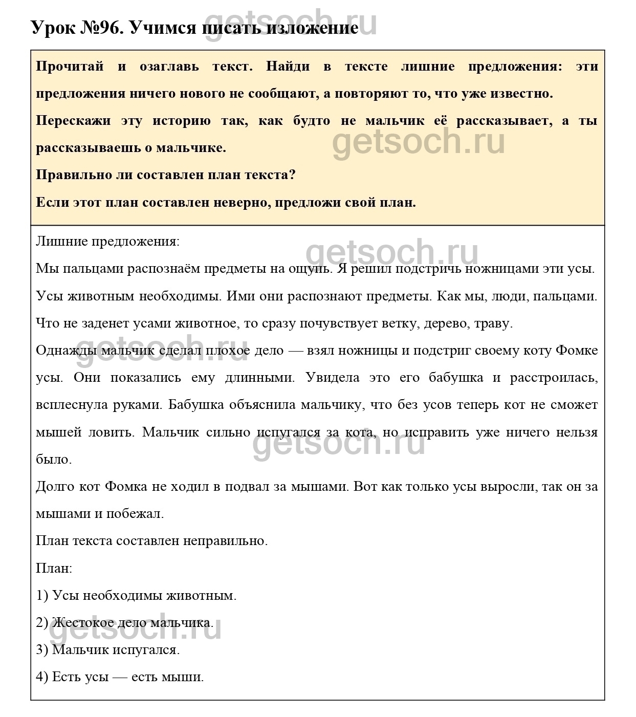 Рассмотрим ответы на Урок №96 из учебника по русскому языку для 3 класса Иванова
