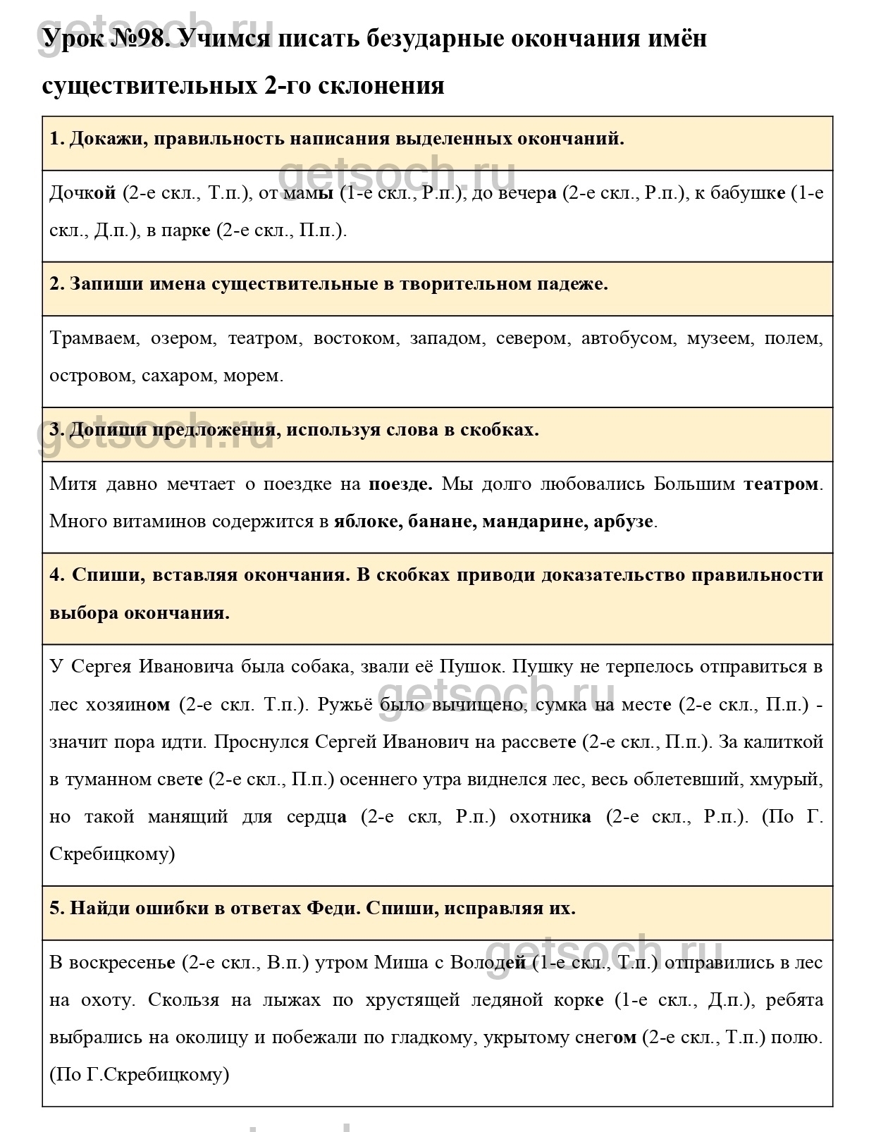 Рассмотрим ответы на Урок №98 из учебника по русскому языку для 3 класса Иванова