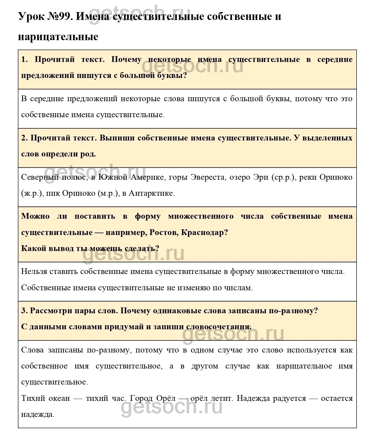 Рассмотрим ответы на Урок №99 из учебника по русскому языку для 3 класса Иванова
