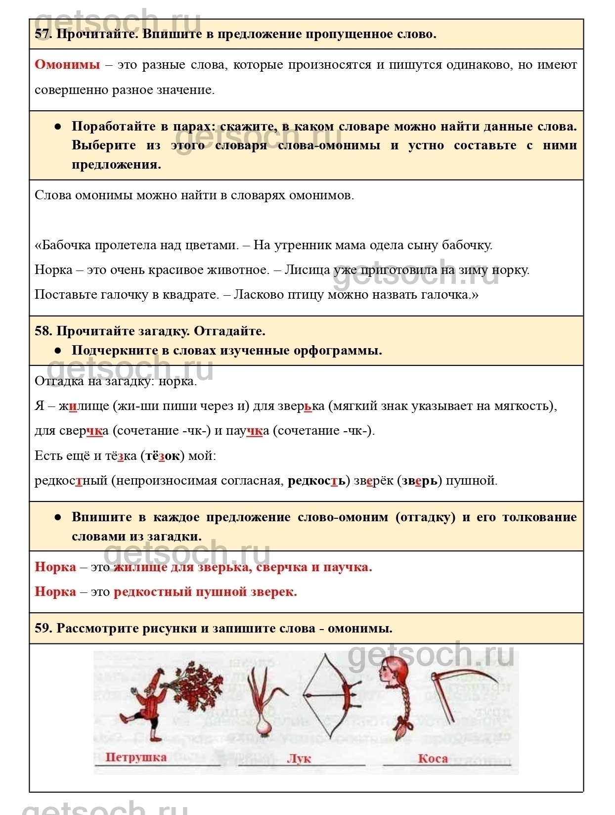 59. Рассмотрите рисунки и запишите слова – омонимы.