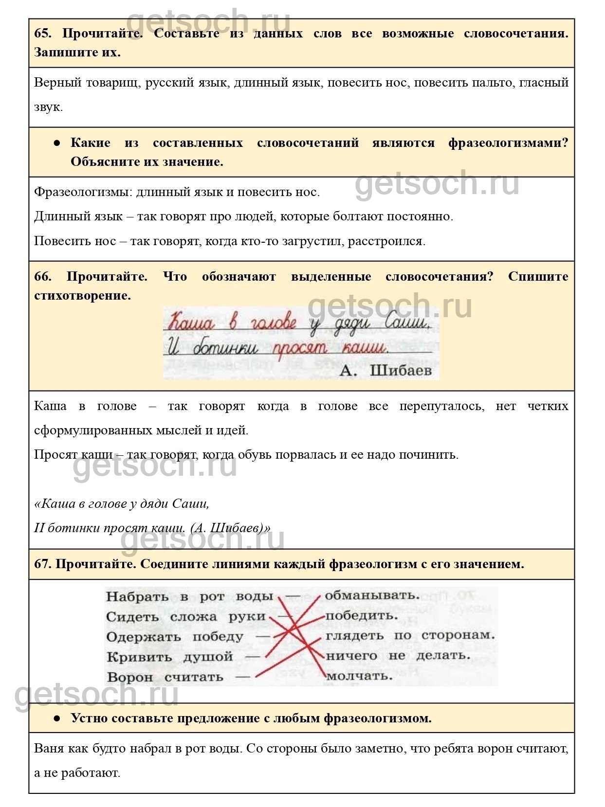 67. Прочитайте. Соедините линиями каждый фразеологизм с его значением.