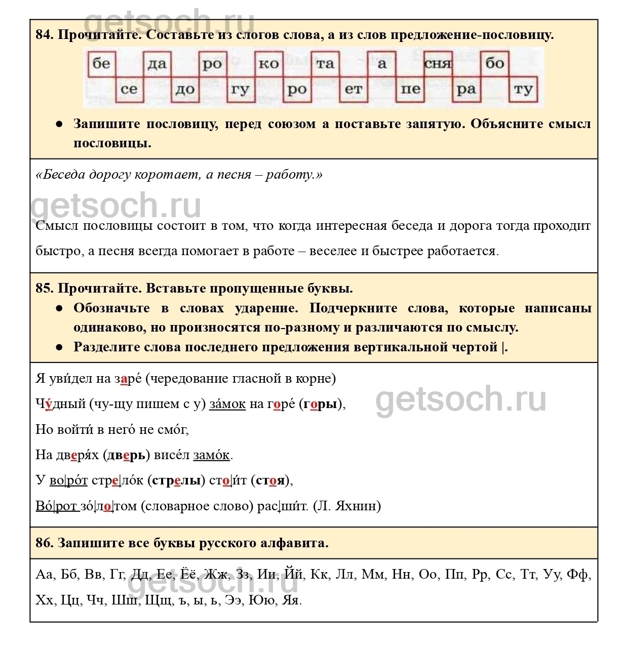 “84. Прочитайте. Составьте из слогов слова, а из слов предложение-пословицу.