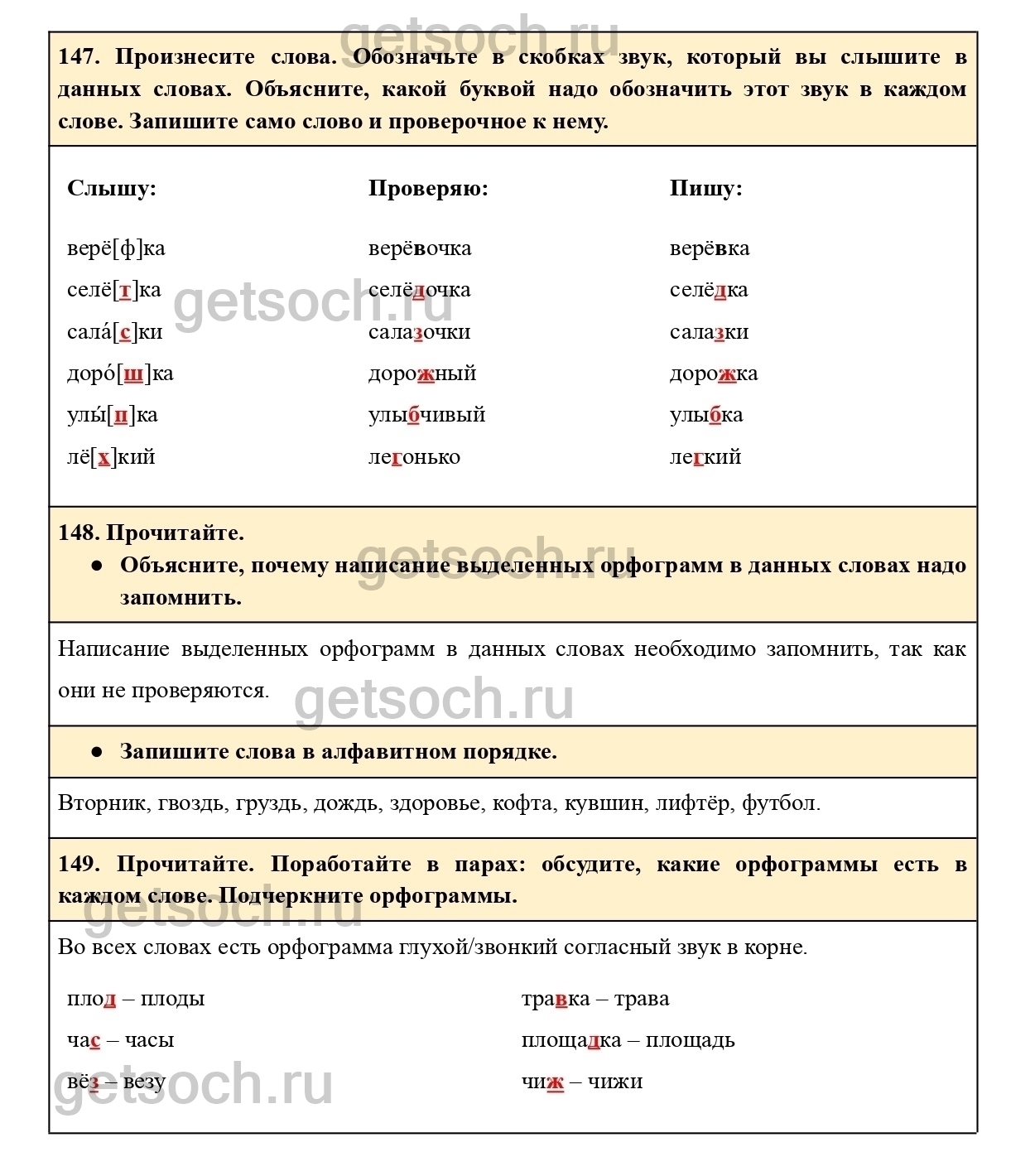 149. Прочитайте. Поработайте в парах: обсудите, какие орфограммы есть в каждом слове. Подчеркните орфограммы.