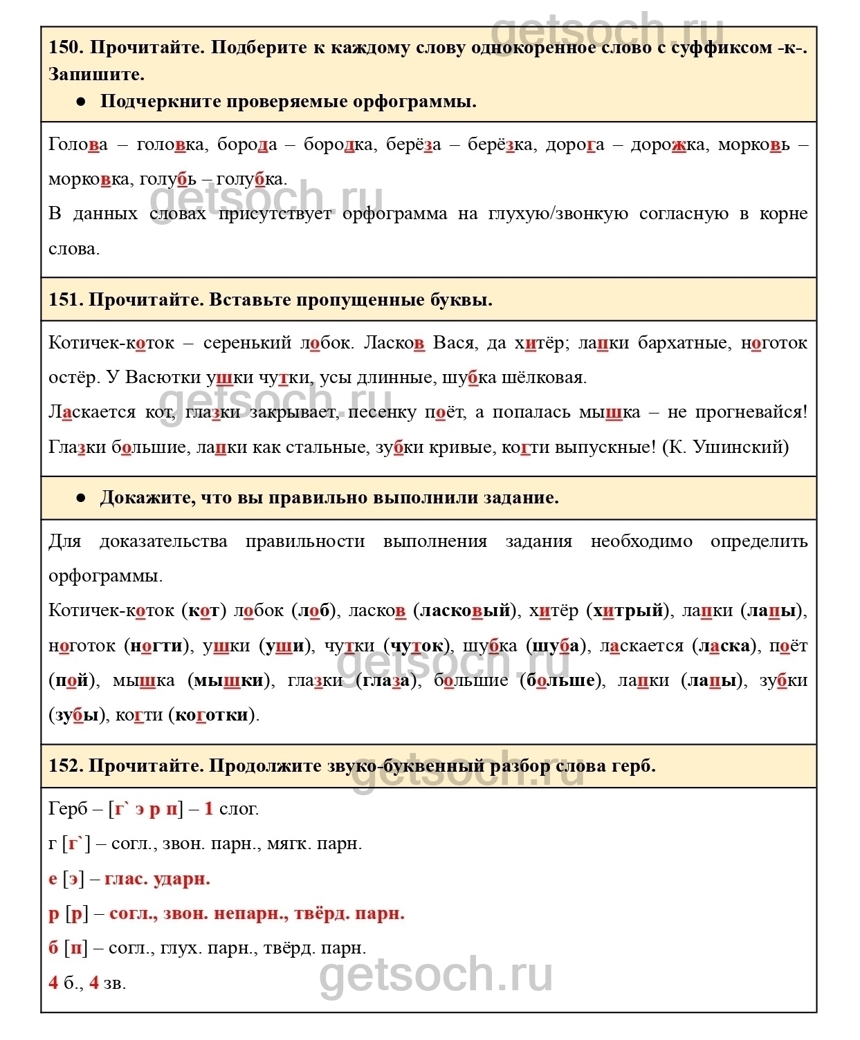 152. Прочитайте. Продолжите звуко-буквенный разбор слова герб.
