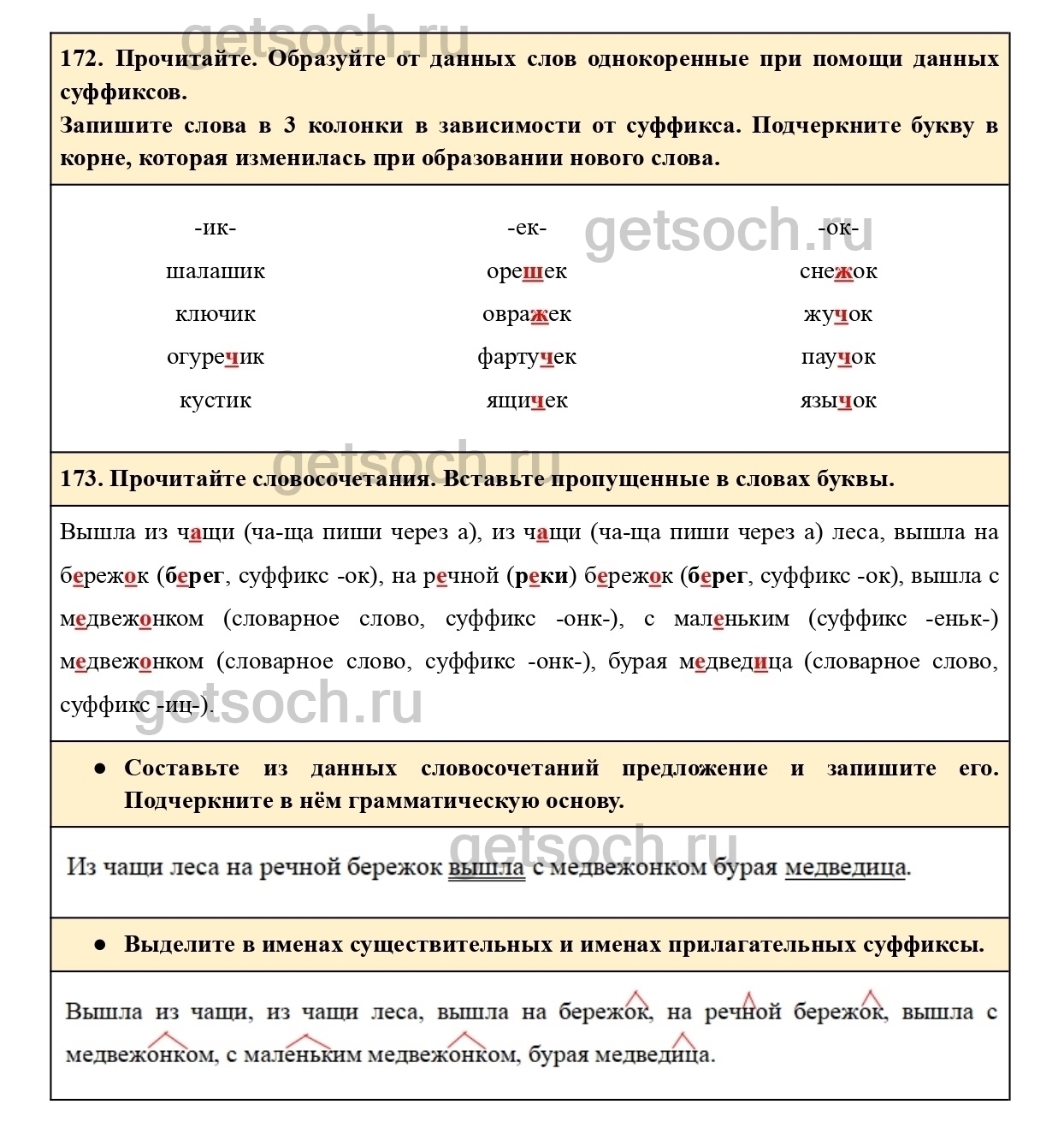 “172. Прочитайте. Образуйте от данных слов однокоренные при помощи данных суффиксов.
