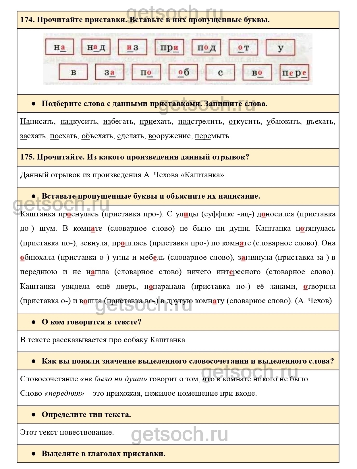 174. Прочитайте приставки. Вставьте в них пропущенные буквы.