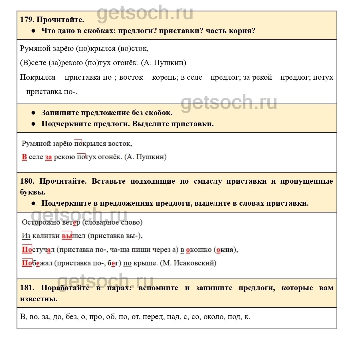 181. Поработайте в парах: вспомните и запишите предлоги, которые вам известны.