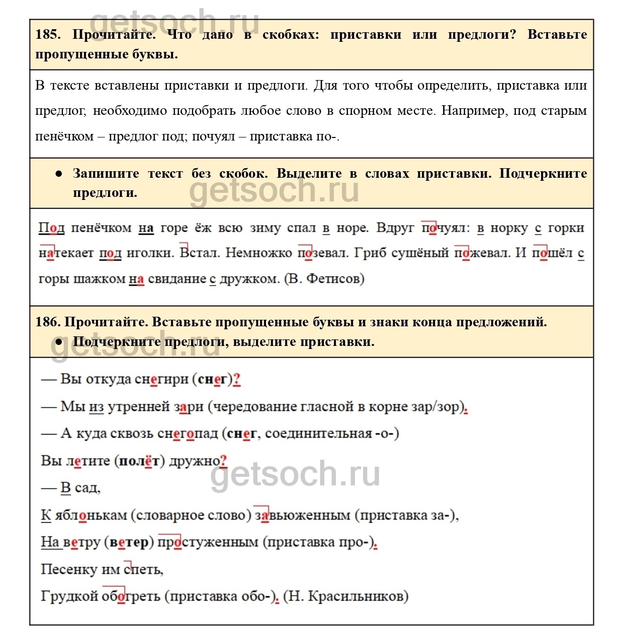 185. Прочитайте. Что дано в скобках: приставки или предлоги? Вставьте пропущенные буквы.