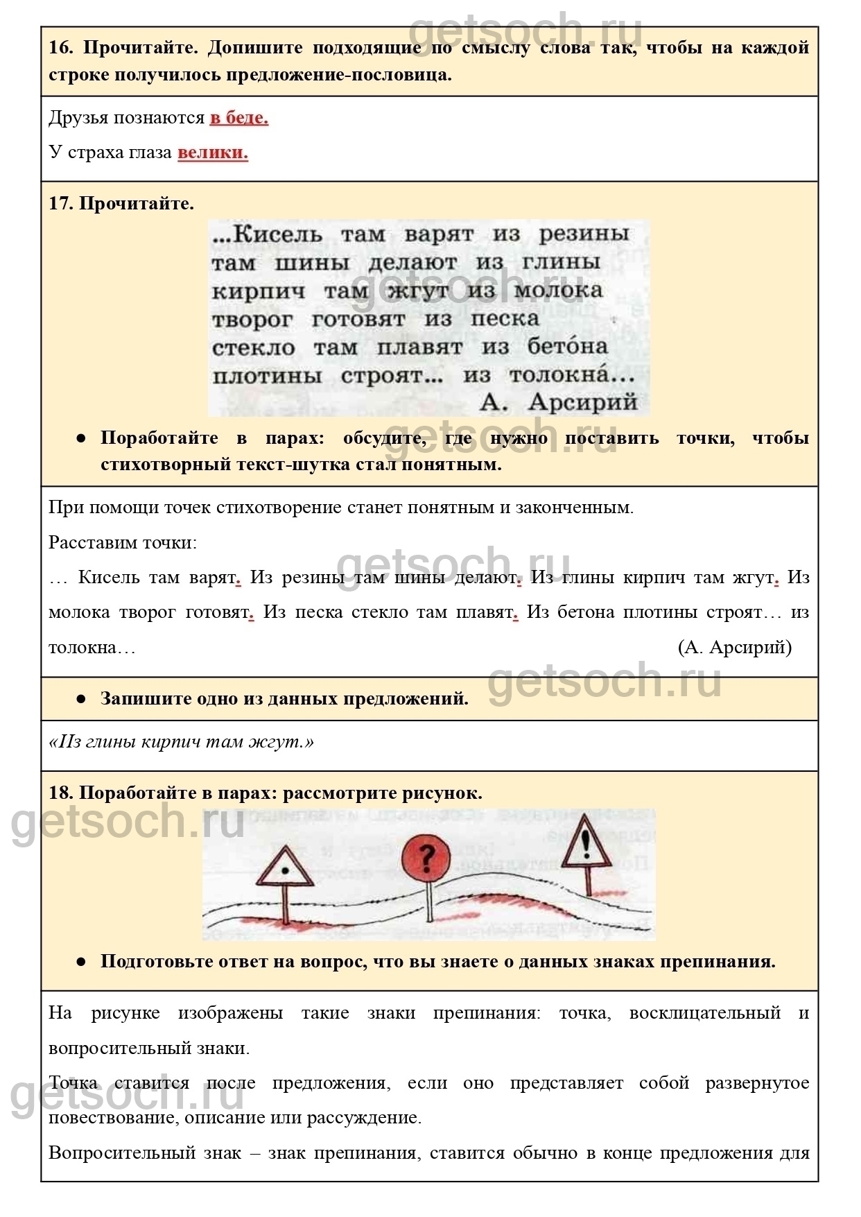 Поработайте в парах: обсудите, где нужно поставить точки, чтобы стихотворный текст-шутка стал понятным.”