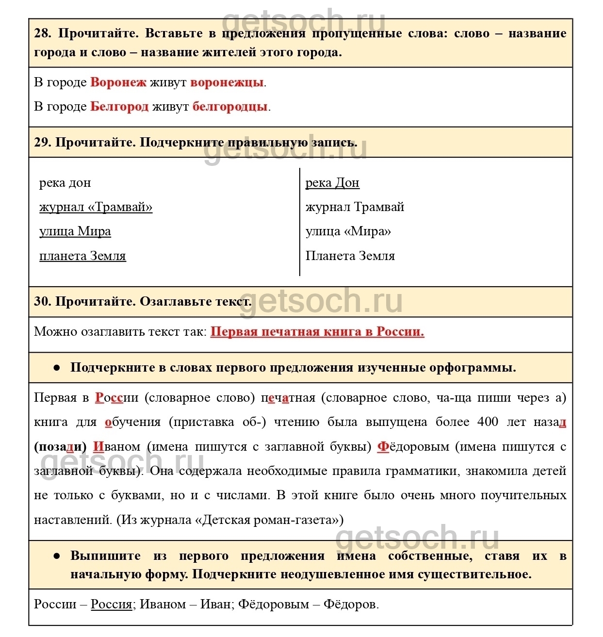 28. Прочитайте. Вставьте в предложения пропущенные слова: слово – название города и слово – название жителей этого города.