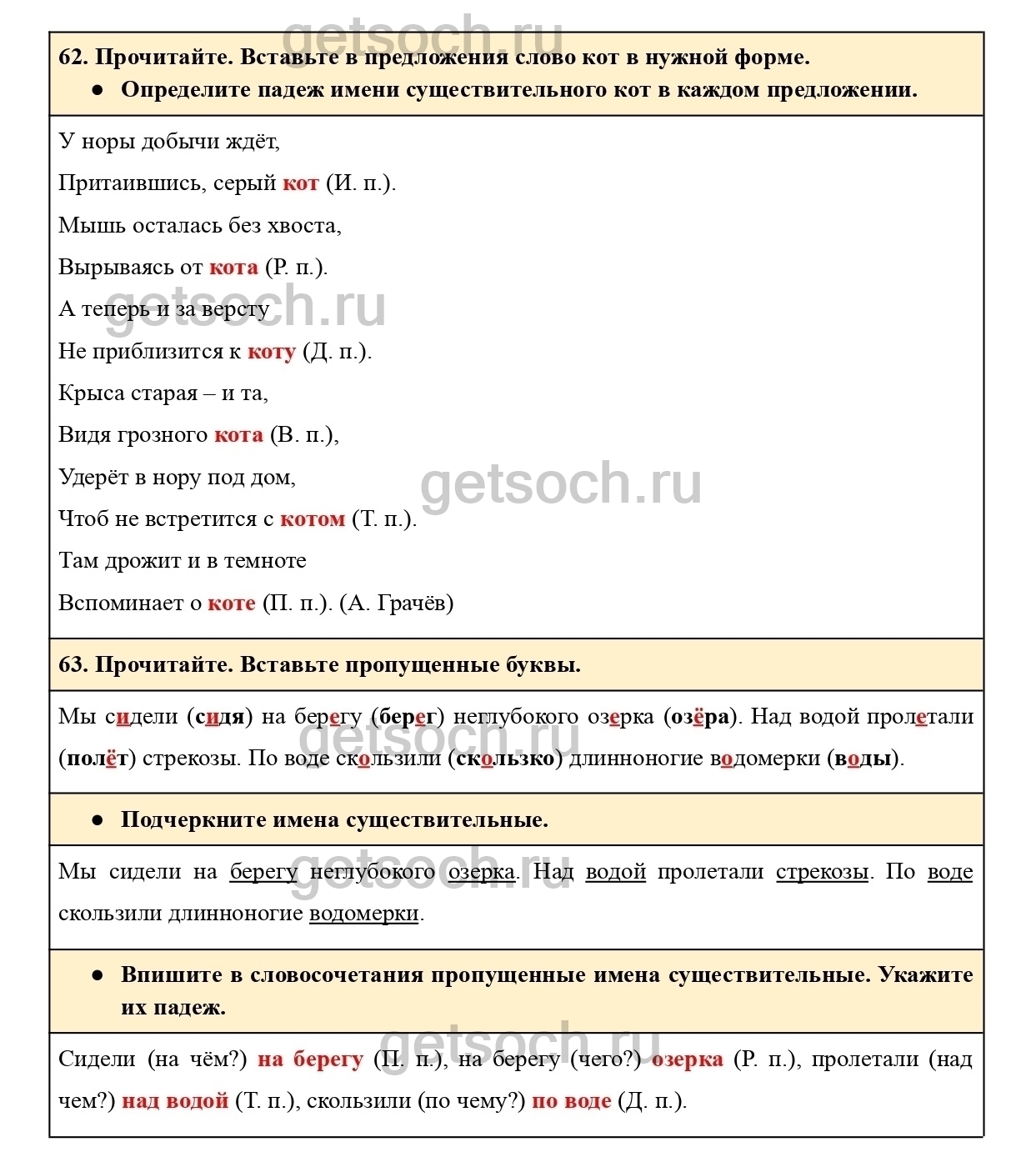 “62. Прочитайте. Вставьте в предложения слово кот в нужной форме.
