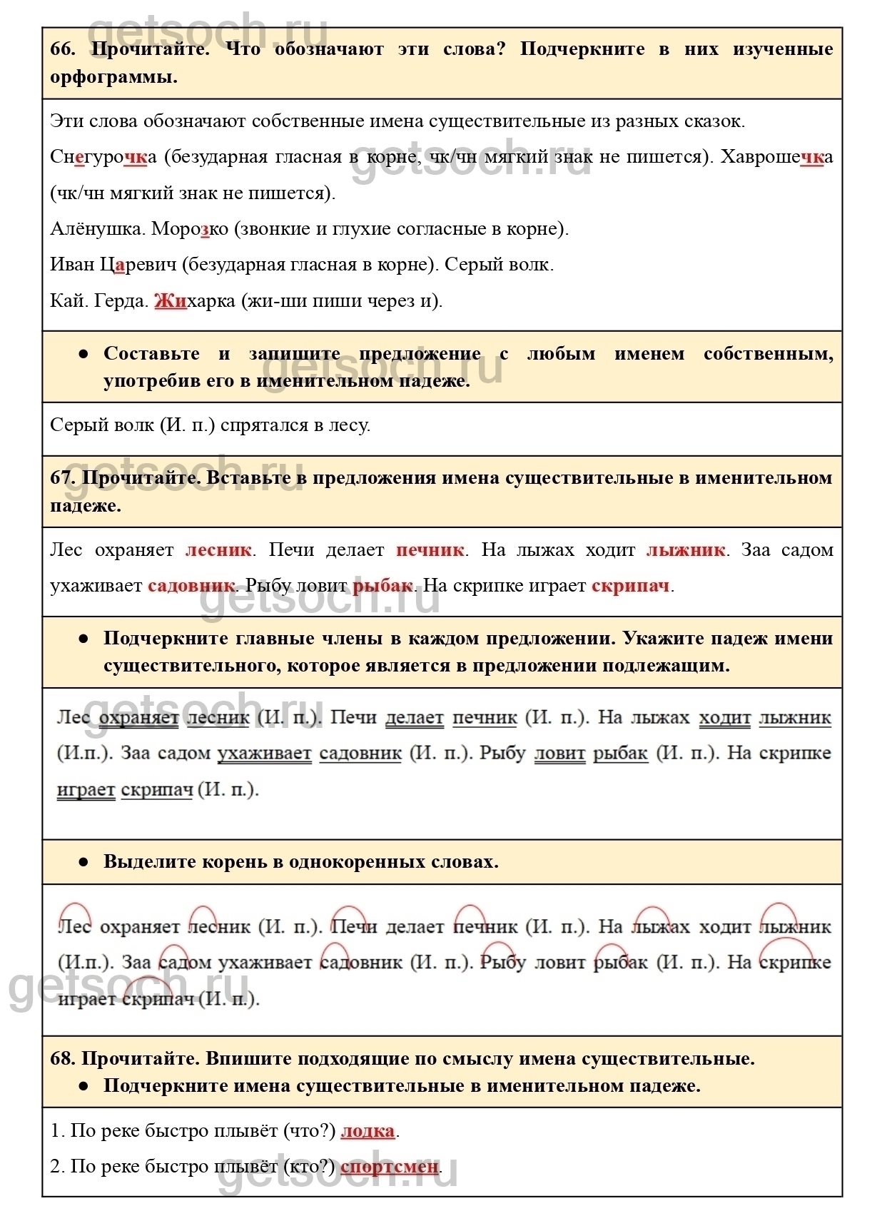 67. Прочитайте. Вставьте в предложения имена существительные в именительном падеже.