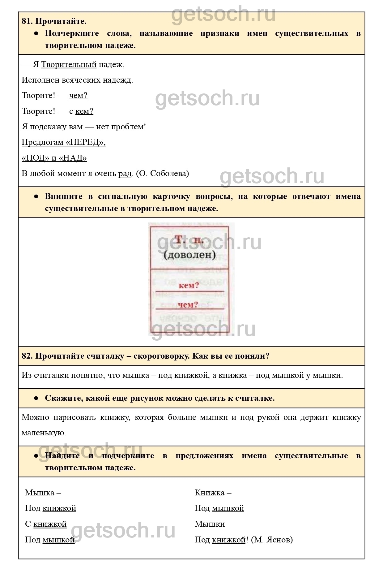 Впишите в сигнальную карточку вопросы, на которые отвечают имена существительные в творительном падеже.