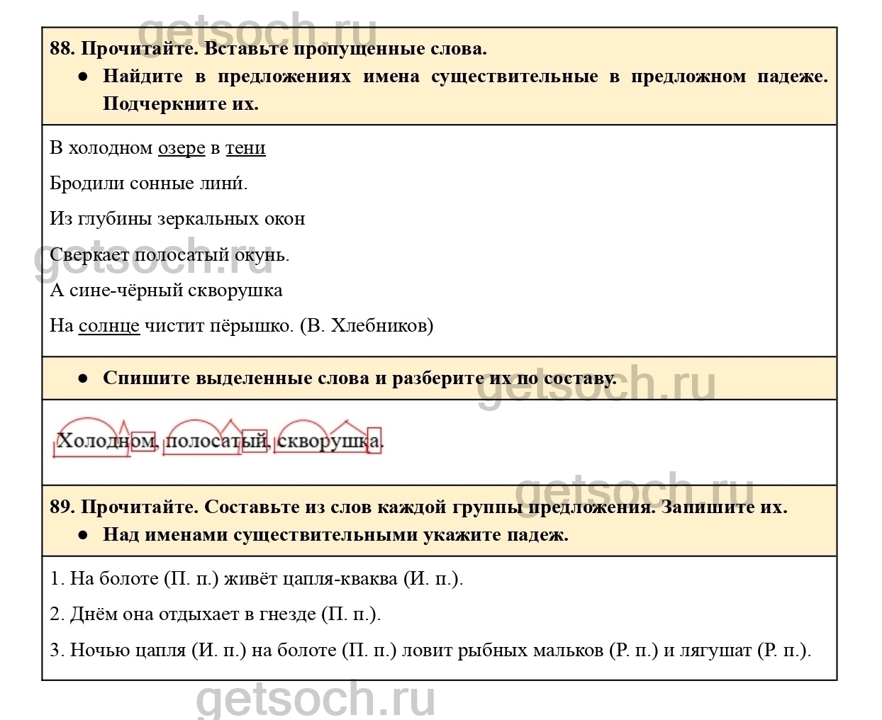 “89. Прочитайте. Составьте из слов каждой группы предложения. Запишите их.