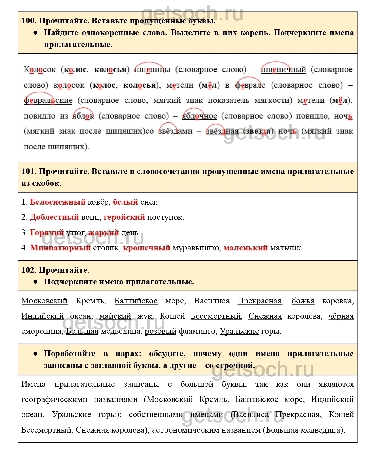 Поработайте в парах: обсудите, почему одни имена прилагательные записаны с заглавной буквы, а другие – со строчной.